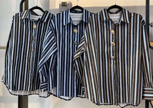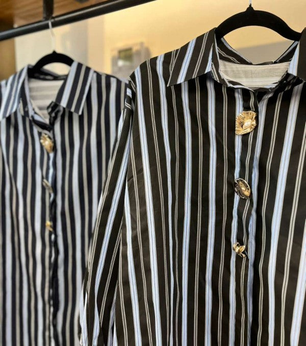 Camisa a rayas con botones metálicos dorados