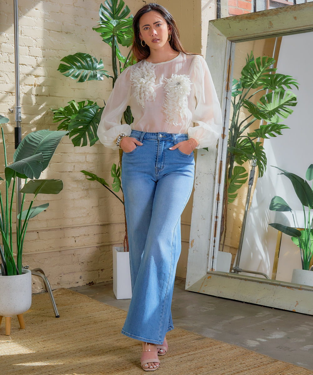 Top de flores 3D transparente