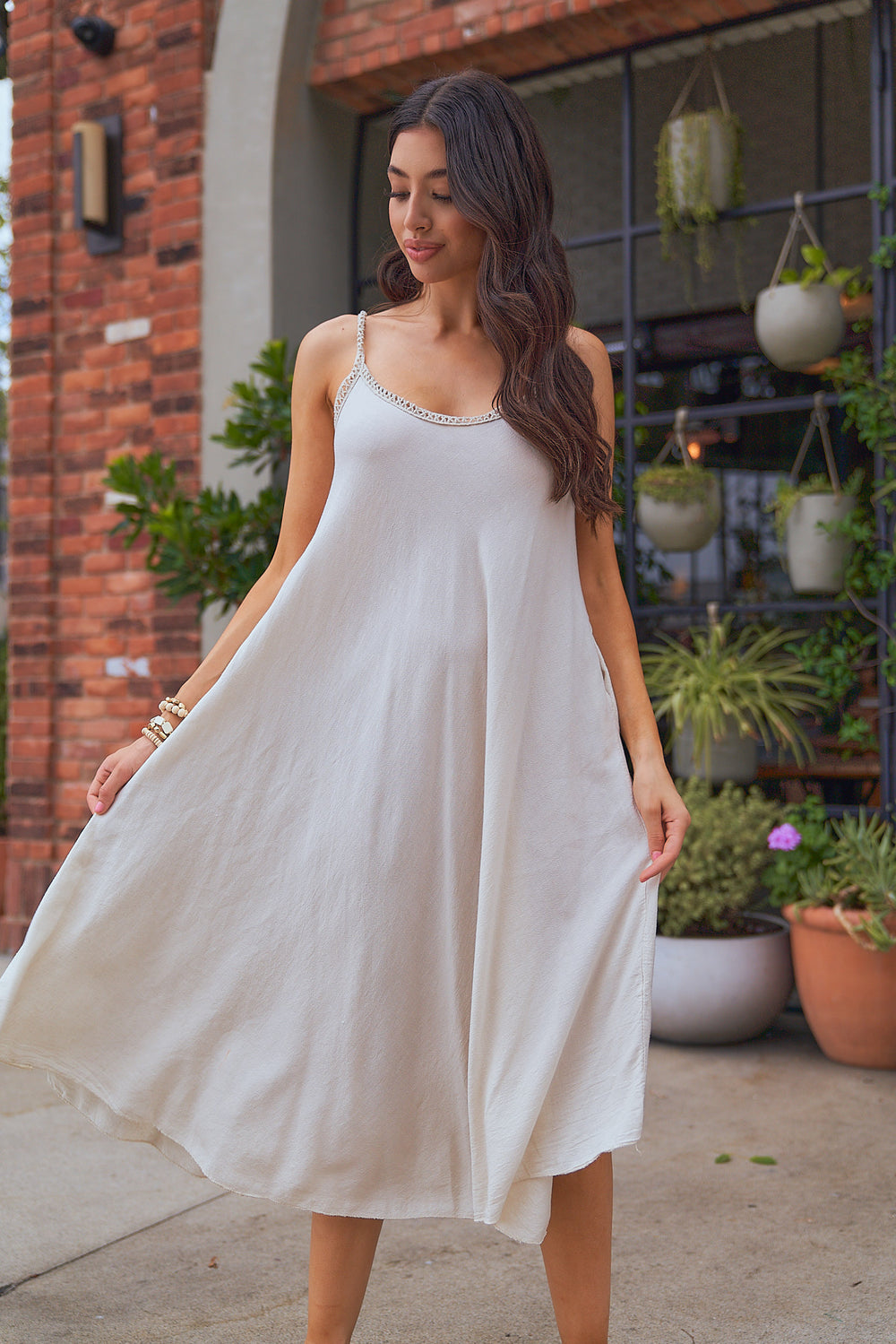 Vestido bohemio midi color piel