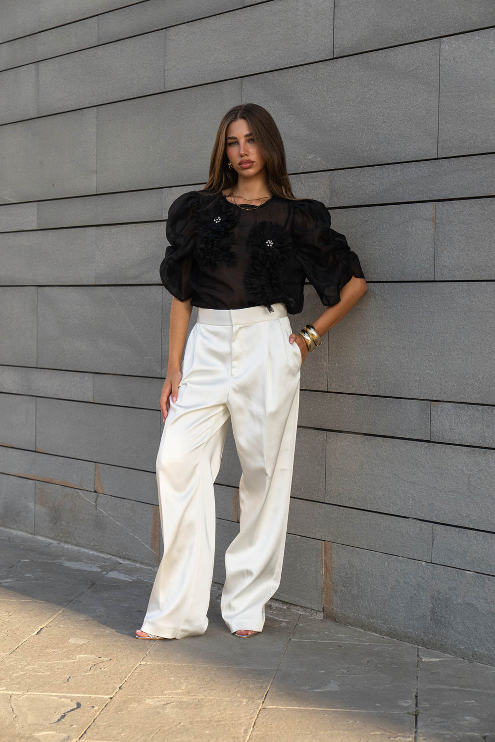 Blusa de organza con mangas abullonadas